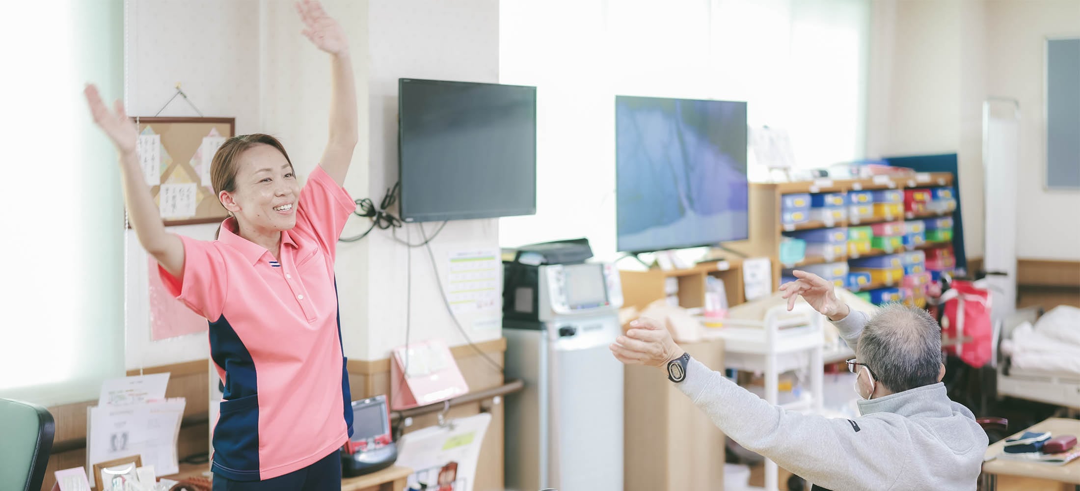 リハビリスタッフ監修の集団体操メニューを介護スタッフがわかりやすく紹介します。